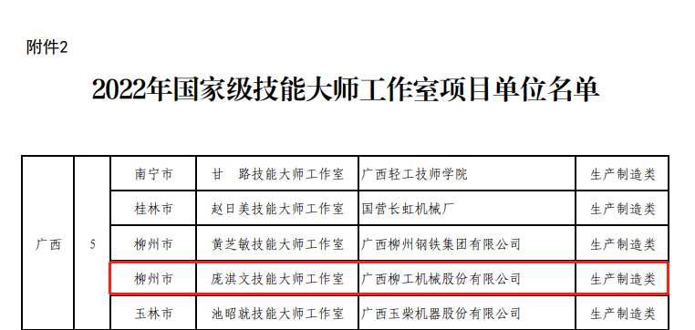 近日,2022年國(guó)家級(jí)高技能人才培訓(xùn)基地和技能大師工作室項(xiàng)目單位備案名單公布,柳工龐淇文技能大師工作室獲評(píng)國(guó)家級(jí)技能大師工作室。至此,柳工已有4個(gè)國(guó)家級(jí)技能大師工作室。