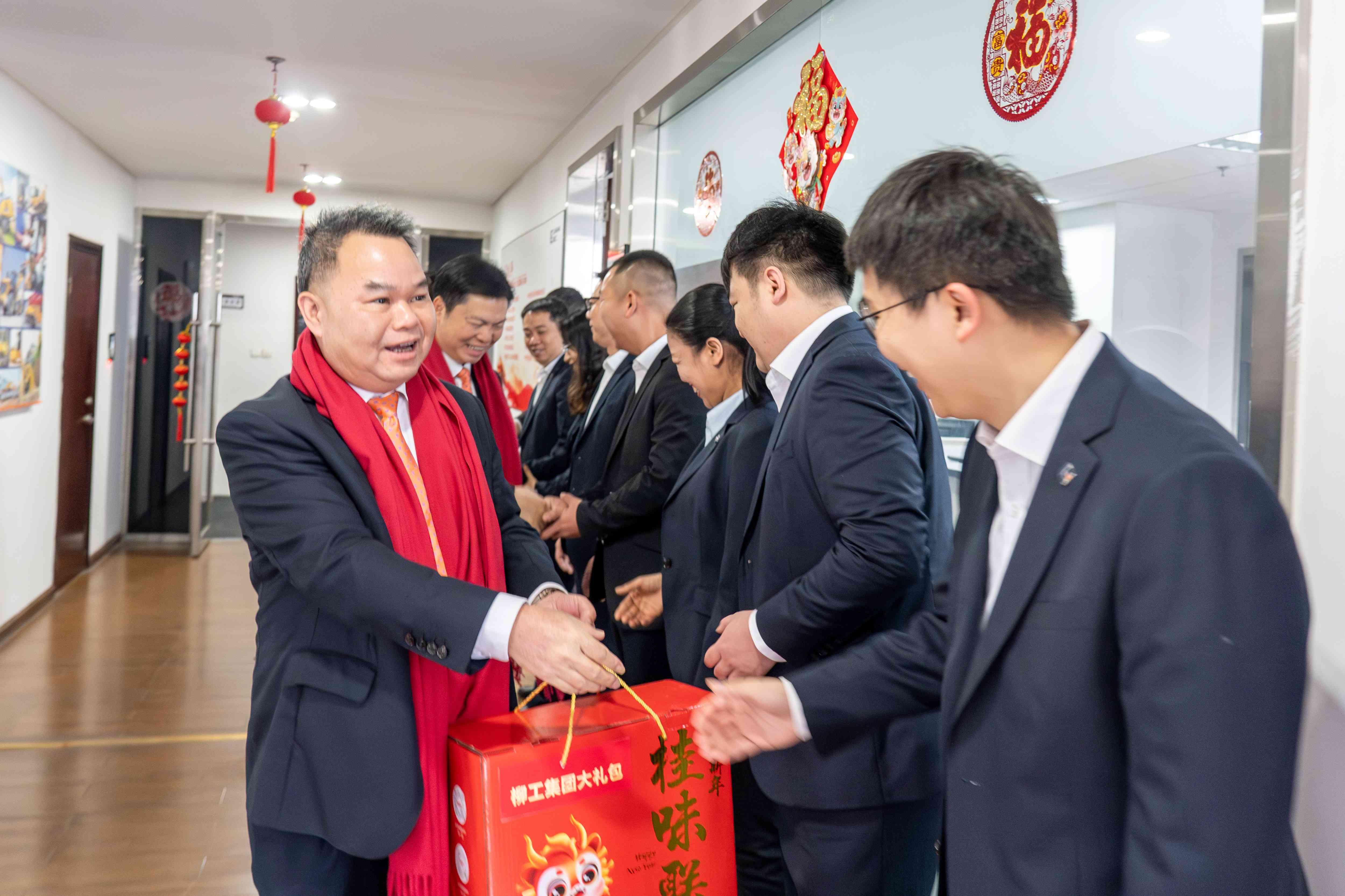 贏在開門,勝在陽春。2月18日,正月初九,龍年春節收假后的第一個工作日,廣西柳工集團有限公司黨委書記、董事長鄭津,黨委副書記、副董事長、總經理王太平,黨委副書記、紀委書記、工會主席賴頌平,董事會秘書、行政總監左芳等集團領導深入到各職能部門和子公司走訪慰問,為員工送去開工祝福,向大家拜年。