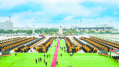 當地時間7月31日,柳工設備批量交付加納政府,支持當地經濟發展計劃中的可持續鄉村道路網維護項目(以下簡稱DRIP項目)。加納政府在阿克拉獨立廣場舉行了隆重的項目啟動儀式。加納總統Nana Addo Dankwa Akufo-Addo,中國駐加納大使館商務參贊李耀宏,加納政府各部門代表,股份公司黨委書記、董事長、首席執行官曾光安,高級副總裁羅國兵等領導出席活動。現場約3000人見證這一時刻。