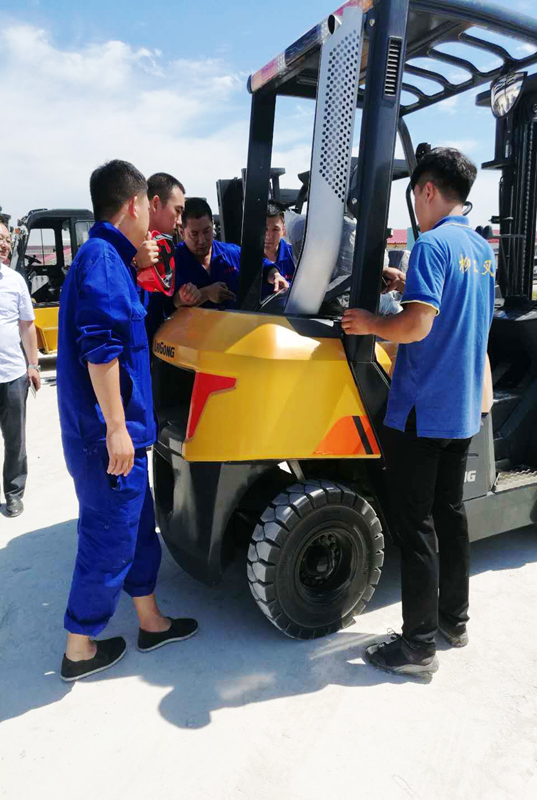 日前,凝聚了公司國際事業部和國內研發團隊共同智慧,歷經四年打造的首臺C系列CLG2030H叉車在東北市場實現銷售。這款集高性能和智能化于一身的新型叉車定位于中高端市場,具備當代叉車所需要的電噴ECU發動機、CAN總線電路控制和智能LCD儀表等先進技術,同時還可輕松選擇經濟、標準和高效發動機模式,以及啟動密碼設置、限定運行速度、感知駕駛員在位操作和獲取故障代碼等功能。交付現場,客戶經過試駕驗車對這款產品十分的滿意。下圖CLG2030H叉車交現場。