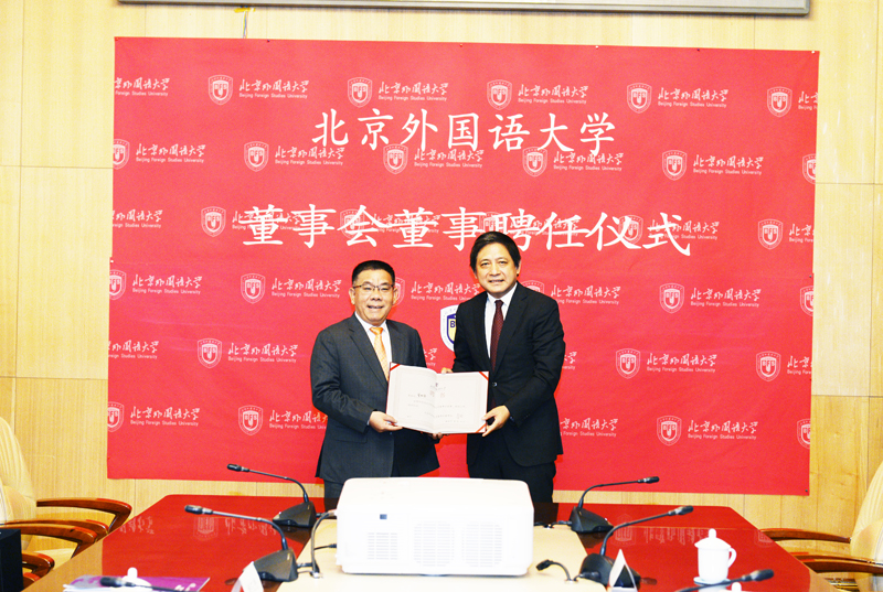 9月11日上午,柳工黨委書記、董事長(zhǎng)曾光安應(yīng)北京外國(guó)語(yǔ)大學(xué)(簡(jiǎn)稱“北外”)校長(zhǎng)彭龍邀請(qǐng),受聘成為北外董事會(huì)董事(如下圖),并在2017年新生開(kāi)學(xué)典禮上致辭。未來(lái),雙方將在人才培養(yǎng)、國(guó)際事務(wù)、國(guó)別和區(qū)域問(wèn)題研究等領(lǐng)域,開(kāi)展廣泛合作。