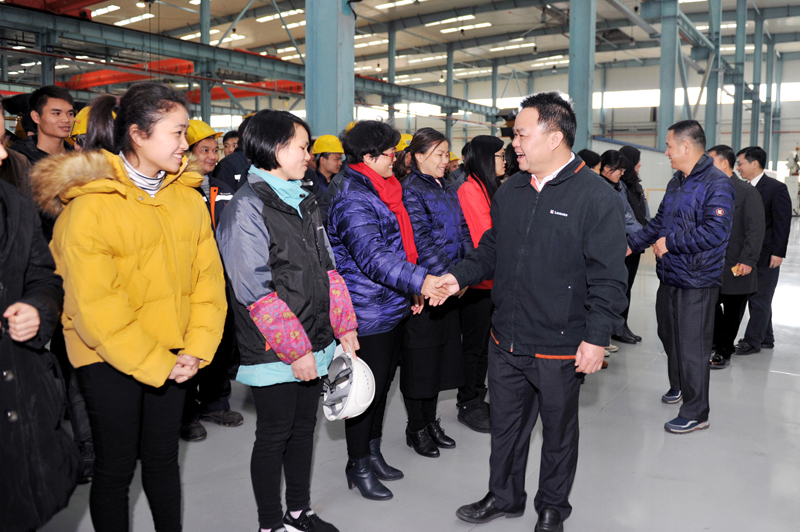 開局就是決戰,起步就是沖刺。2018年濃濃的年味還未散去,公司不少生產制造系統已經開足馬力忙生產了,無論在公司本部還是異地公司,到處已是忙碌的身影,一幅趕早、抓早、拼早的新春新景,令人振奮。帶上新春的祝福和節日的問候,公司領導曾光安率隊到子公司管理人員、技術人員、生產人員的中間,開展新春慰問活動。