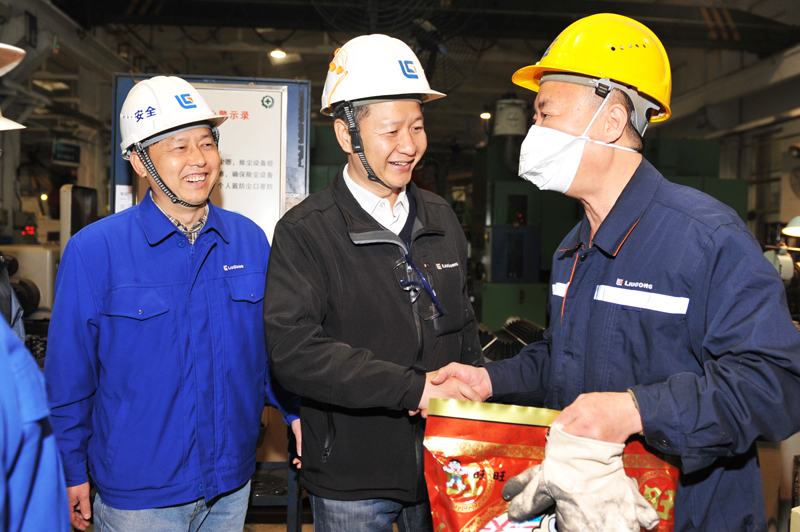 開工儀式結束后,黃海波來到生產車間,對一線的班組人員進行慰問,詢問員工春節期間的生活情況,并囑咐員工們在高產攻堅戰中,要保重身體并送上慰問品,給員工們帶來了滿滿的祝福。員工們的臉上洋溢著陽光般的笑容,嘴角掛著幸福的微笑。
