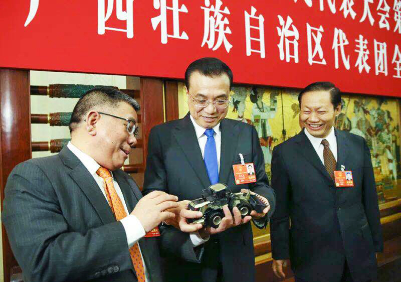 3月6日上午,李克強參加他所在的第十三屆全國人大一次會議廣西代表團的分組討論,共同審議政府工作報告。廣西團各位代表就經濟社會發展、對外開放、裝備制造升級、支持鄉村振興等問題先后發言,代表們還向李克強展示了扶貧進展、企業創新的照片和工程機械產品模型。李克強指出,要鞏固發展向好勢頭,必須繼續依靠改革開放創新。廣西作為西部地區中唯一的沿海省份,區位優勢明顯,發展潛力巨大。要堅定不移擴大對外開放,深度融入“一帶一路”建設,深入實施創新驅動發展戰略,結合推進“互聯網+”和“中國制造2025”,提升創新創業水平和質量,大力弘揚工匠精神,推動建設制造強國,努力在搶占未來競爭制高點中贏得優勢。