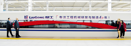 現(xiàn)場(chǎng)嘉賓為“柳工·和諧號(hào)”揭幕