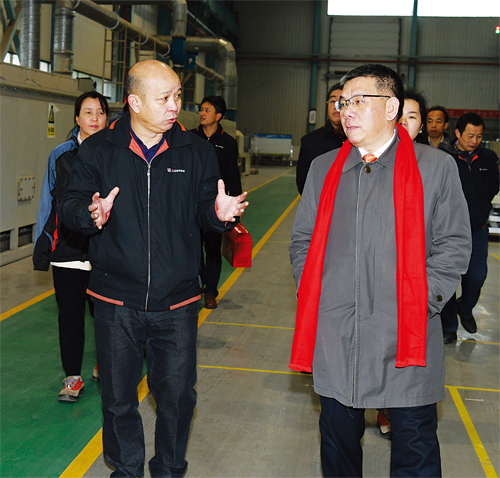 在壓縮機公司慰問時,曾光安聽取了該公司負責人對2018年各業務情況的介紹,對壓縮機公司過去一年的各項工作給予肯定。在一臺即將發運的XHP1450——1600D壓縮機前,曾光安得知客戶對該產品贊譽有加,十分高興,他鼓勵壓縮機公司領導班子要大膽創新,努力開發市場,爭取今年產銷實現新突破。