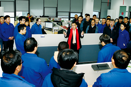 在全球研發中心,曾光安分別看望慰問了研究總院、裝載機研究院、挖掘機研究院、傳動件研究所等院所的工程技術人員,向大家致以新年的祝福問候。他感謝過去一年公司全體研發技術人員為公司發展做出的不懈努力。他強調,搞產品開發一定要有創新力,要有自己的核心競爭力技術,要摒棄模仿別人產品的“跟班”做法。他希望2019年,裝載機研究院和挖掘機研究所在產品開發領域取得新碩果。